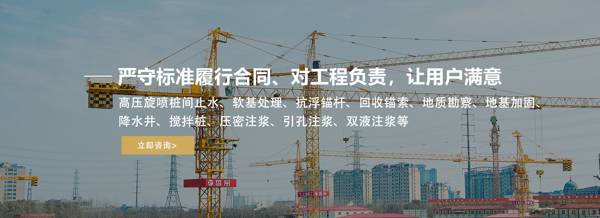 主營高壓旋噴樁間止水、軟基處理、抗浮錨桿等建筑工程